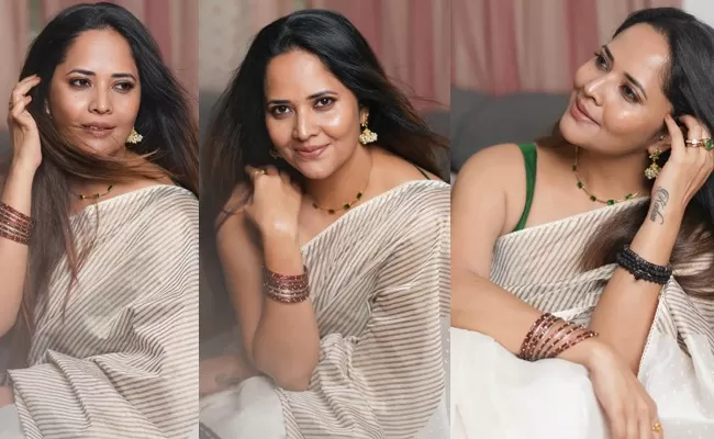 Anasuya Bharadwaj steps into the frame with effortless charm, dressed in a sleeveless green blouse that reflects her confident, contemporary poise. Paired with a simple, flowing saree, the ensemble strikes a perfect balance between elegance and ease, letting her natural grace take the spotlight.