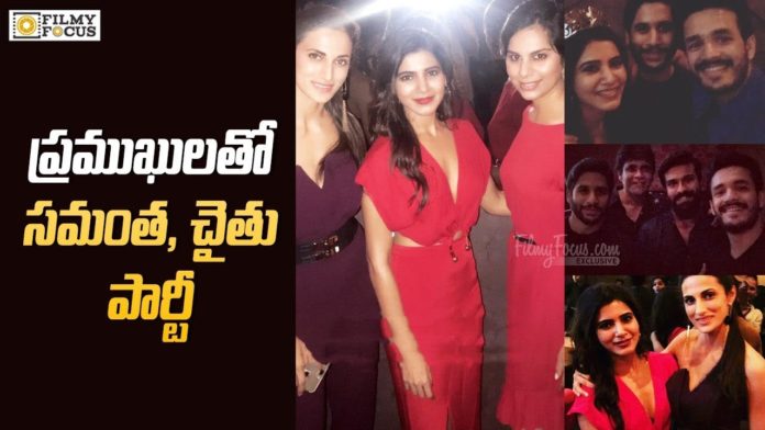 Last night, Sam threw a cozy bachelorette party to her closed ones from in and outside film industry. The pics from the party are circulating on social media where the petite actress looks quite comfortable and jovial in the company of her fiance Akkineni Naga Chaitanya.