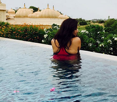 Anasuya, who is currently holidaying in Udaipur, Rajasthan has shared this lovely pic. She is seen soaking herself in a swimming pool. Just like Samantha, Anasuya has also posted a pic showing her back to the camera, needless to say the pic has gone viral on social media.