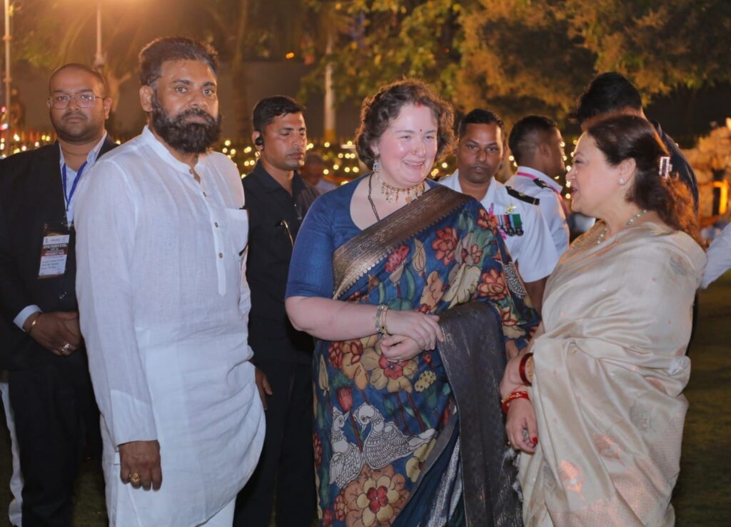 Deputy Chief Minister Pawan Kalyan attended a special Navy dinner in Visakhapatnam alongside his wife, Anna Konidela. The event was hosted by Navy officials in honor of President Droupadi Murmu, who is in the city for the International Fleet Review 2026.