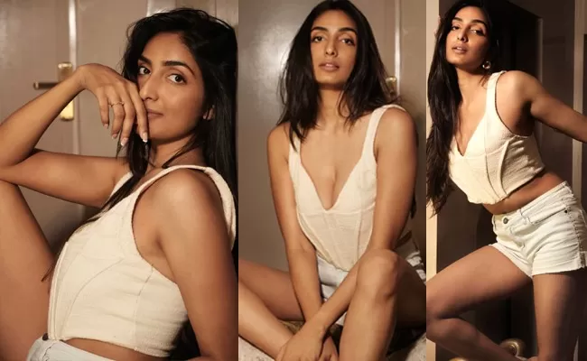 Aishwarya Sushmitha embraces a relaxed summer vibe in her latest casual photo set, radiating effortless charm and confidence. Dressed in white shorts paired with a sleeveless, low-neckline top, she keeps the look breezy, playful, and stylish.